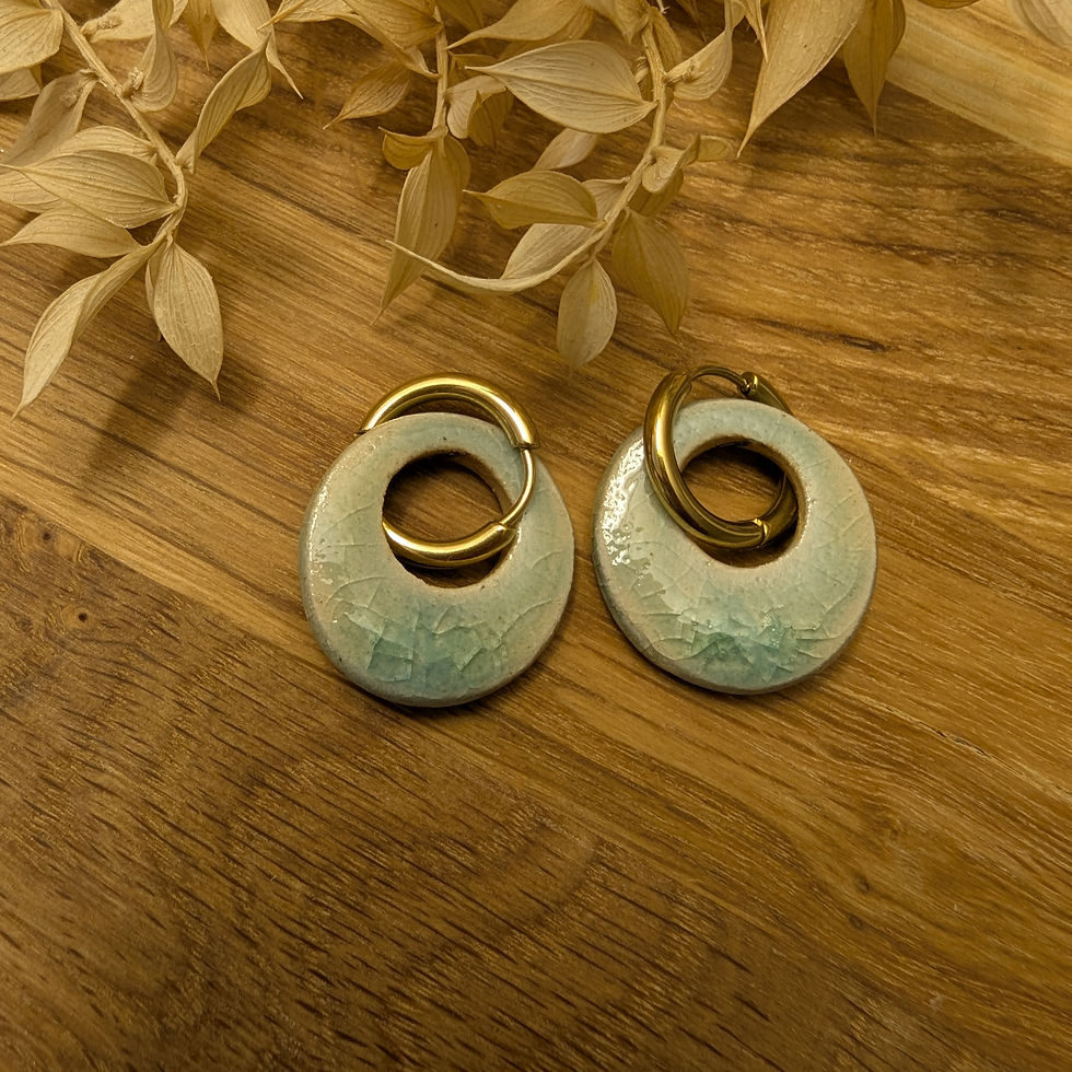 2 Stück Donut Anhänger grün mit Cracks (Creolen separat erhältlich)